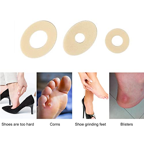 Dimensioni del tappeto di mais: Cuscinetti in Schiuma per Piedi ha un diametro esterno di 1,7 cm, un diametro interno di 0,7 cm (disegno cavo) e uno spessore di 0,3 cm, è adatto per i chicchi di mais per coprire la pelle dura dei piedi e alleviare il dolore.