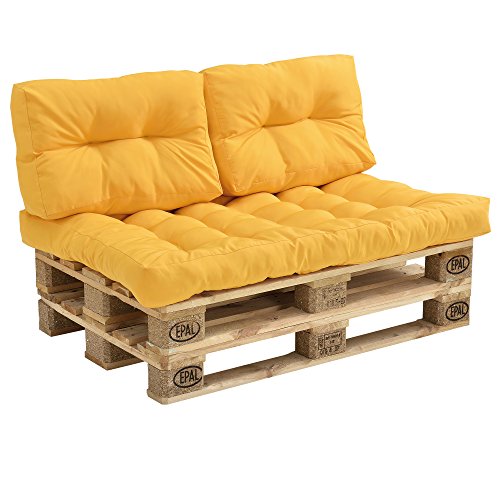 Cuscini per palette - a Un Set di 5 - Cuscino Sedile + Cuscino Schienale [Color Senape] Divano a palette Adatto per Dentro e Fuori