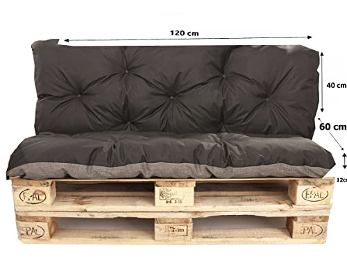 Set di cuscini per pallet per esterni, per interni (cuscino 120 x 60 + schienale 120 x 40 cm, nero)