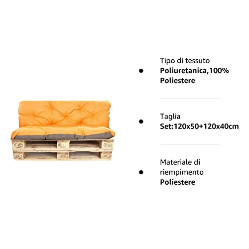 Cuscini pallet, cuscini per pallet esterni/cuscino Euro pallet, cuscino divano, cuscino salotto da giardino (Set:120x50+120x40cm, arancione)