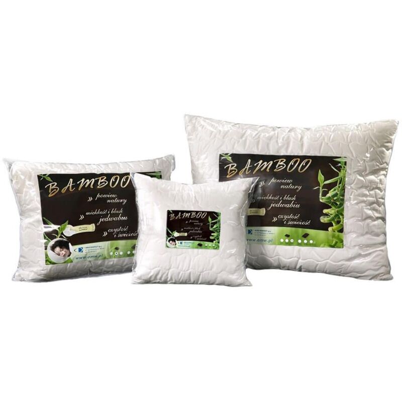 Cuscino 70x80 Bamboo, Collezione: Bamboo, Misura: 70x80, Colore: bianco, Fodera: 50% bambù, 50% poliestere, Imbottitura cuscino: 100% poliestere Palline Amball, Peso imbottitura: 1000 g, Confezione: sacchetto di plastica.
