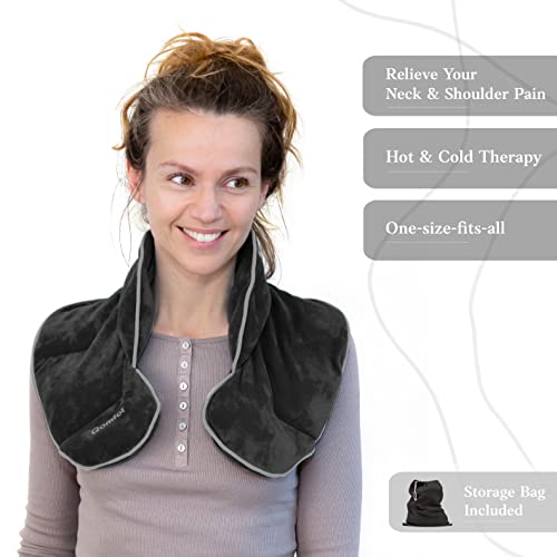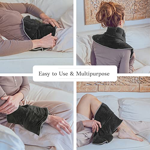 Cuscino Cervicale Riscaldante - Cuscino Caldo Cervicale 48 x 15 cm - Cuscino Termico Microonde Lavanda e Grano con Morbida Copertura in Pile per Alleviare il Dolore (Dark Grey)