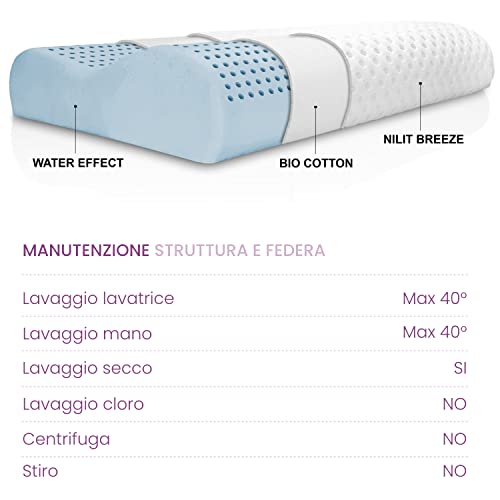 Cuscino Cervicale con Schiuma HR - Termoregolatore - Forma anticervicale con Effetto fresco - Riverstimento Breeze - Utilizzo specifico per la Cervicale e per Problemi di Sudorazione - Made in Italy
