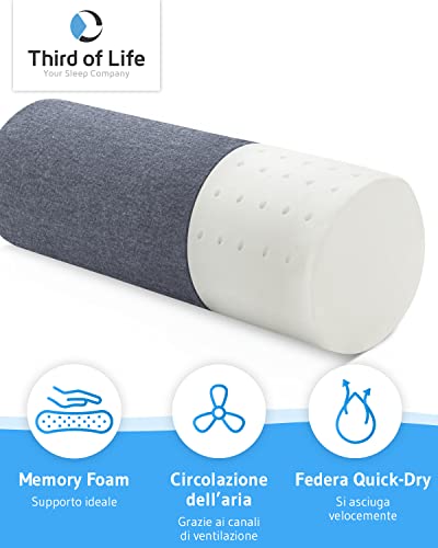 Cuscino cilindrico UniROLL 40x15 cm con fodera ad asciugatura rapida | Rotolo ortopedico in memory foam | Cuscino ergonomico per gambe e ginocchia | Cuscino rotondo per chi dorme supino e sul fianco
