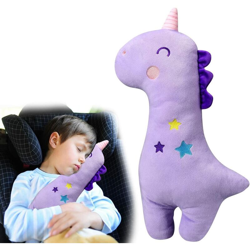 Copertura per imbracatura per bambini adatta ai viaggi]: Questa imbracatura per bambini è progettata pensando alla meccanica del corpo. La forma dell'unicorno e della giraffa è curva per sostenere il collo e la testa del bambino. La copertura della cintura di sicurezza per bambini protegge il collo. Il cuscino della cintura di sicurezza dell'auto rende le vacanze più facili per il tuo piccolo. Materiale morbido e confortevole]: Questo cuscino per cintura di sicurezza per bambini è realizzato in peluche corto e poliestere. Gli spallacci del cuscino della cintura di sicurezza del bambino sono imbottiti in cotone PP e rivestiti in morbido micropile con apertura/chiusura in velcro. L'imbracatura per animali domestici in peluche non è tossica. Sicuro per i bambini. La sensazione è morbida e soffice. [Copri cintura di sicurezza multiuso]: Il simpatico cuscino per auto a forma di animale offre un comodo cuscino per i bambini durante i lunghi viaggi in auto. Entrambi sono ben fatti e