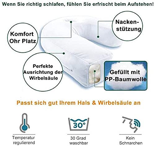 Cuscino Per Il Collo Dormiente Laterale,U-forma Cuscini Di Supporto Cervicale-ergonomico Morbido Sollievo Respiro Dolore Al Collo Soffre Cuscino Cuscino Con Foro Per Le Orecchie-Bianco 55*11cm(15.75*4