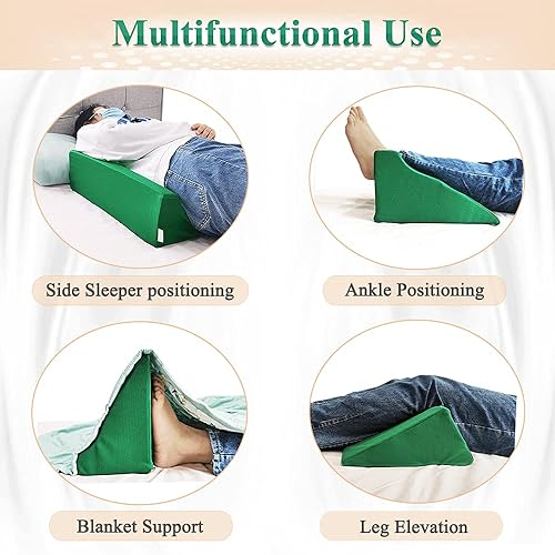 Cuscino a cuneo per dormire, in schiuma, per posizione inclinata, per adulti, per dormire, per gravidanza, mal di pancia, mal di schiena (verde)