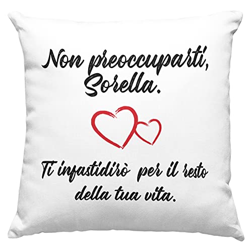 Cuscino con Dedica Sorella, Regalo Festa Sorelle, Idee Regalo Sorella, Arredamento Casa, Arredo Divano Letto - con Imbottitura (40_x_40_cm, Sorella)