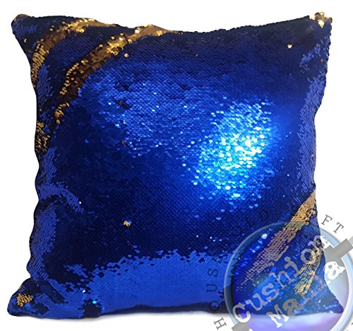 Cuscino per divano o divano con paillettes, reversibile, a due toni, con glitter (blu reale oro, cuscino imbottito)