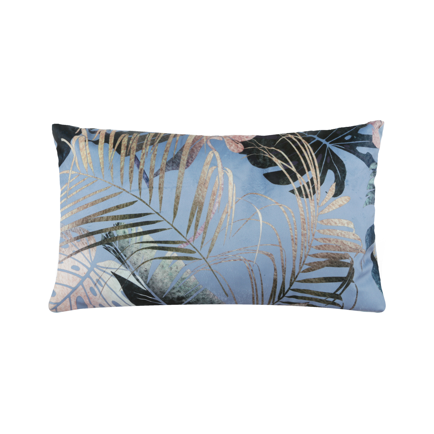 Completa l'arredo del salotto con questo bel cuscino decorativo dall'effetto velluto. Ideale da posizionare sul divano, sulla poltrona o sul letto in camera, aggiunge un nota estetica davvero gradevole. I delicati decori naturali sulla trama azzurra si adattano con gusto ad arredi classici e più moderni. Grammatura: 270 gsm. Imbottitura: 400 gsm. Misura cuscino rettangolare: 30x50 cm. Lavabile in lavatrice a 30°.