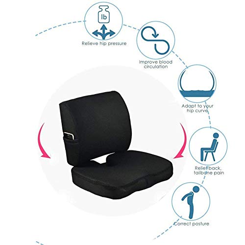Cuscino Ergonomico per Sedia da Ufficio,Cuscino di Supporto Lombare Ortopedico in Memory Foam,Fornisce Supporto per la Schiena,Migliora la Postura, Rivestimento Lavabile,Nero