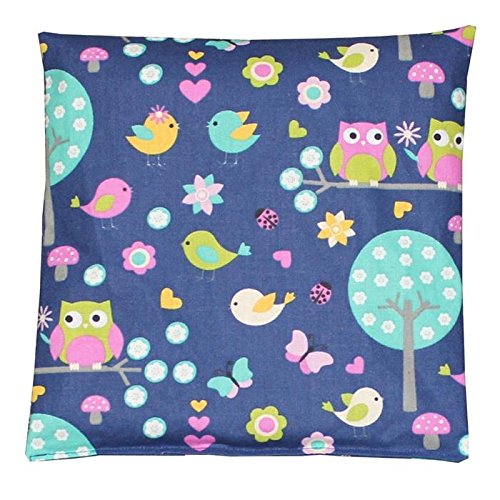 Cuscino di farro 20x20cm Gufo Blu Terapia del caldo e del freddo Cuscini in grani 100% cotone