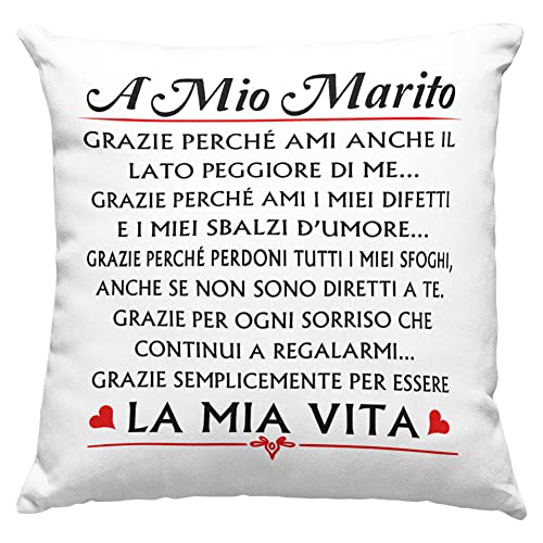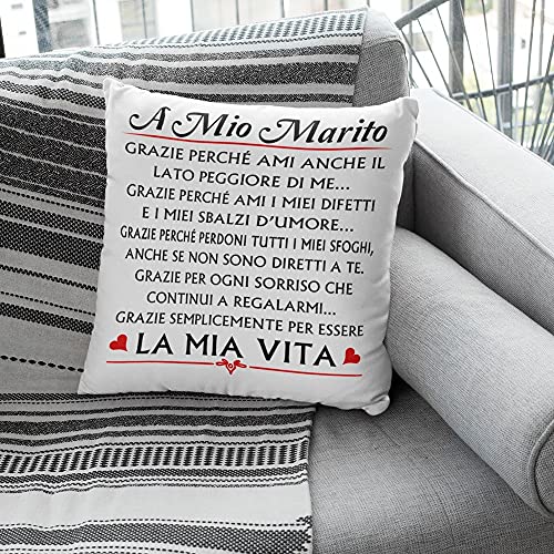 Cuscino Federa Marito Speciale, Idea Regalo di Compleanno Originale, Frasi D'amore, Arredamento Casa Divano Letto - senza Imbottitura (40_x_40_cm, A mio Marito)
