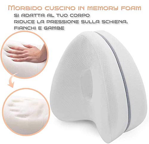 Cuscino Ginocchia per Dormire, Leg Pillow Per Testata Letto, Cuscino Gambe Ortopedico e Poggiapiedi, Cuscino in Memory Foam Per Schiena e Sciatica, Riposagambe Lombare Per Dormire Sul Fianco