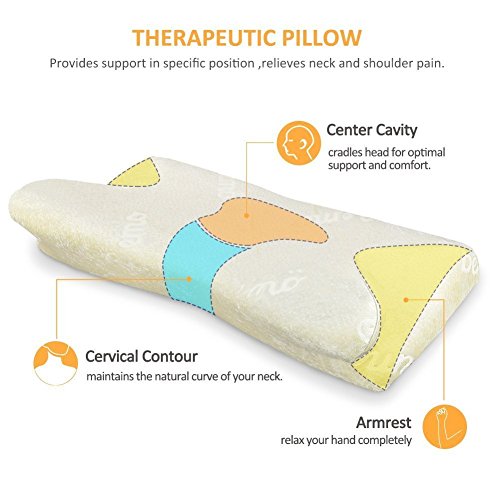 Cuscino in memory foam, design ergonomico, con 2 federe, allevia i dolori a collo, spalle e schiena, Armrest