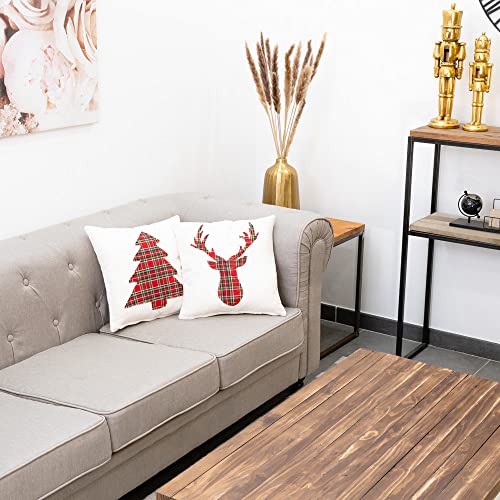 Cuscino Natalizio in tartan Renna di Babbo Natale Arredo Divano Letto - Cuscino Natalizio Decorazione di Natale Copricuscino, 40x40 cm