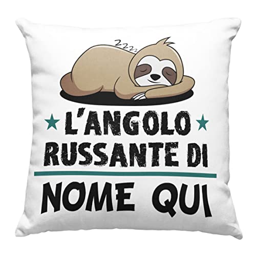 Cuscino personalizzabile L'angolo russante, Cuscino personalizzato 40x40 cm per chi russa, Idea Regalo per Natale, Regalo compleanno - con Imbottitura (Bianco, 40_x_40_cm)