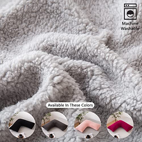LSC,Cuscino in pile a V con federa in pile super morbido e caldo, a forma di V, imbottitura in fibra cava per testa, collo e schiena, maternità, gravidanza (argento)