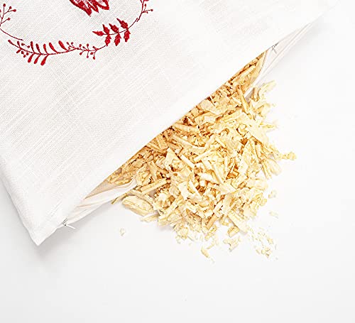 Cuscino di pino cembro beige rosso ricamato con cervo, dimensioni 40 x 40 cm, riempito con fiocchi di cembro in legno di pino alpino, con fodera extra