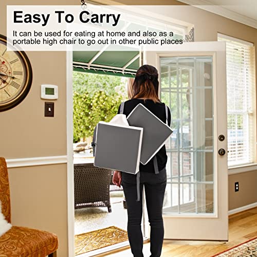 Cuscino rialzista per sedia per bambini, 32 x 32 x 8 cm, seduta d'appoggio per bambini per tavolo da pranzo, con 2 cinghie con fibbia di sicurezza e schienale, grigio