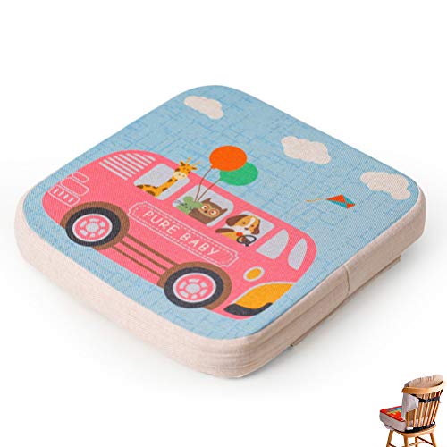 Cuscino Rialzo da Sedia per Bambini, Fansu Comodo e Facile da Pulire Smontabile Regolabile Cuscino Alzasedia Seggioloni Cuscino Seduta per Sedia da Giardino (Autobus animali,40x40x5cm)