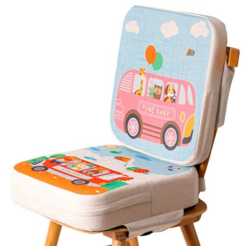Cuscino Rialzo da Sedia per Bambini, Fansu Comodo e Facile da Pulire Smontabile Regolabile Cuscino Alzasedia Seggioloni Cuscino Seduta per Sedia da Giardino (Autobus animali,40x40x10cm)