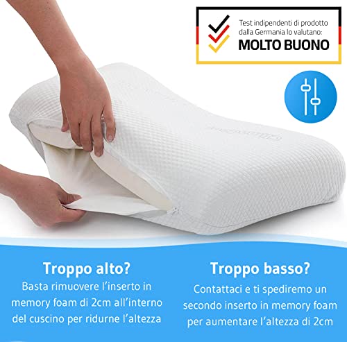ERGONOMIA OTTIMALE - Il memory foam si modella in base ai lineamenti. La forma ortopedica assicura una migliore postura nel sonno.