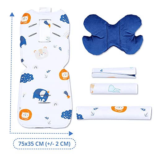 Cuscino per sedile cuscino per passeggino - Cuscino per sedile per seggiolino per bambini set universale traspirante con protezione per cintura 75 x 35 cm Velluto Blu Arcobaleno