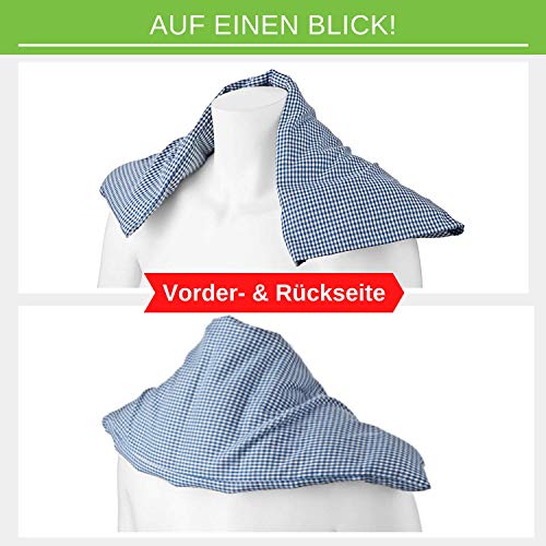 Cuscino di semi di colza, 60 x 20 cm, adatto al microonde, per collo, spalle e schiena, cuscino termico con semi di colza, colore blu e bianco a quadretti, ragazze e ragazze, rivestimento rimovibile