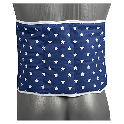 Cuscino termico con cintura, noccioli di ciliegia. Lunghezza totale: 135cm, stelle blu. Fascia schiena, lombare e pancia - microonde, forno e frigorifero