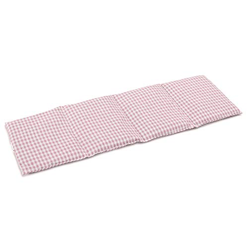 Cuscino termico - Cuscino con semi di ribes 60x20cm. Riscaldabile e impacco freddo con tessuto. Terapia caldo e freddo. (Contone biologico, rosa e bianco, diviso en 4 compartimenti)