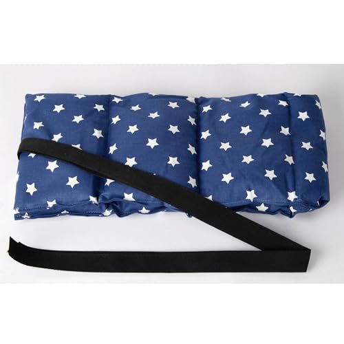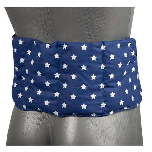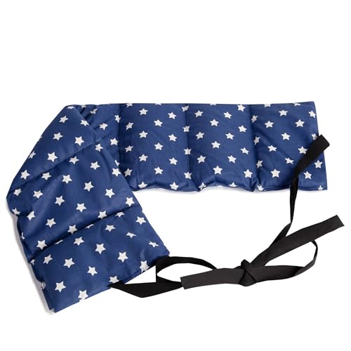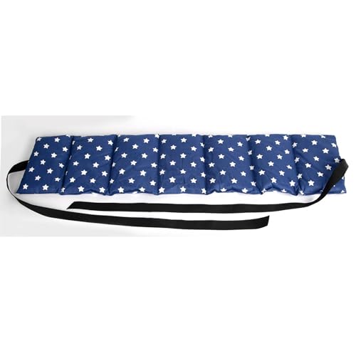 Cuscino termico con semi di uva - Cuscino riscaldabile per la schiena, lombare, stomaco e molto altro (65x15cm, Estrelle blu, 7 compartimenti con banda da legare)