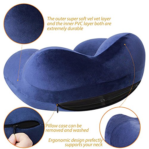 Cuscino di Viaggio,EatekPower Lussuoso Cuscino Gonfiabile per il Collo Supporto-Compatto e Leggero per Dormire in Aereo, Auto, e Treno Cuscino a Collo in Cuscino Gonfiabile a Forma di U