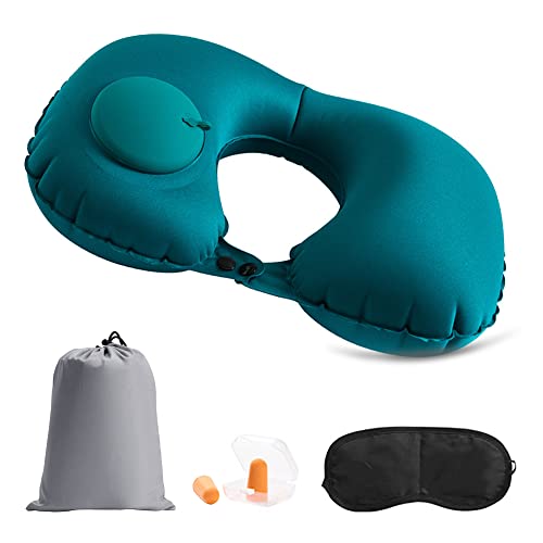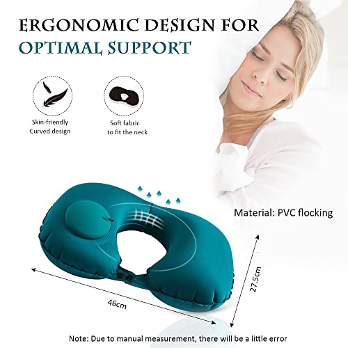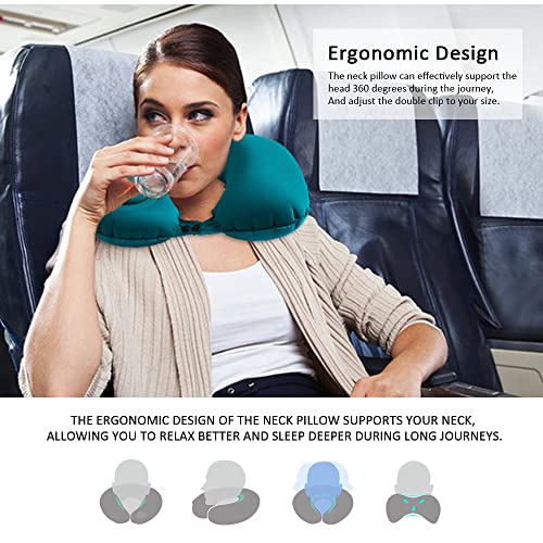 Cuscino da Viaggio Gonfiabile Aereo Cuscino per il Collo Ergonomico Cuscino Cervicale con Tappi per le Orecchie,Maschera e borsa per campeggio,escursionismo,ufficio,casa,auto,aereo,treno e autobus