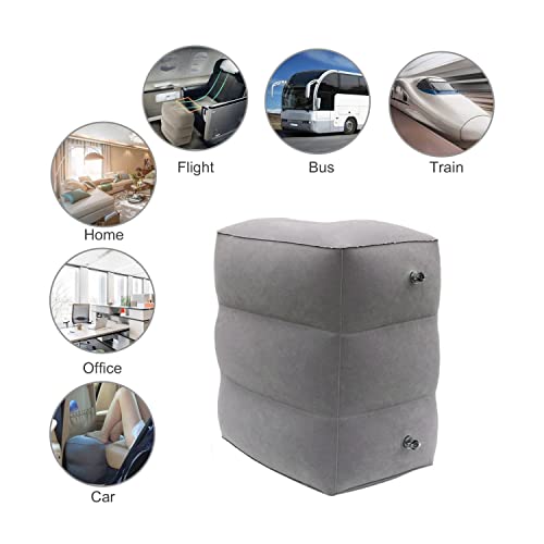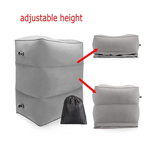 JZK Cuscino da viaggio gonfiabile grigio, cuscino da viaggio a 3 strati con borsa portaoggetti e gonfiatore, cuscino regolabile in altezza per casa, ufficio, autobus e auto