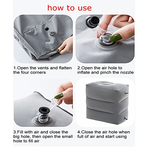 Il cuscino poggiapiedi ha tre altezze che possono essere regolabili, tre misure soddisfano le diverse esigenze di altezza. Dimensioni da gonfiato: circa 40 x 30 x 50 cm (lunghezza x larghezza x altezza). Dimensioni da sgonfio: circa ): 15 x 10 cm.