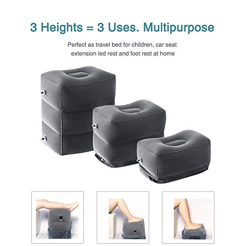 Cuscino da Viaggio - Poggiapiedi Gonfiabile Cuscino Portatile Aereo Aiuta a Dormire per Bambini con 3 Altezza Regolabile per Riposo di Gambe Espanso durante Viaggi in Aereo, Auto e Treno