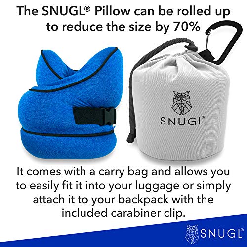 Cuscino da viaggio SNUGL - Cuscino in memory foam dal design ergonomico di alta qualità, borsa da viaggio con clip inclusa (Marlin Blue)