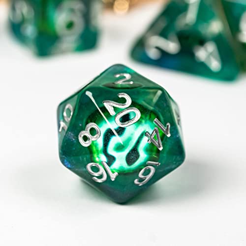 Cusdie Set di 7 dadi poliedrici riempiti con Galaxy Eye, per giochi di ruolo, Dungeons and Dragons, dadi di D&D (verde)