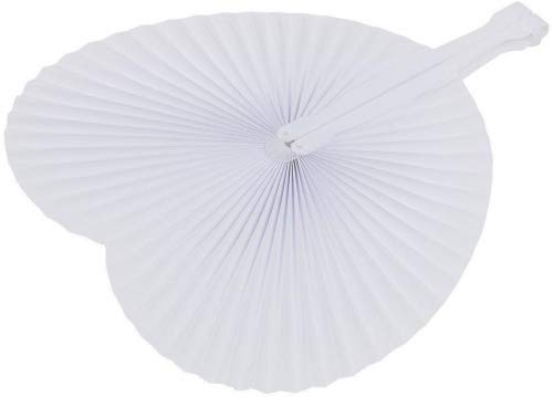 Cusfull 48 Pezzi Ventilatore di Carta Pieghevoli Plastica Carta Piegante Assortimento con Plastica Maniglia per Matrimonio Favorire Festa, Bianco(A Forma di Cuore)