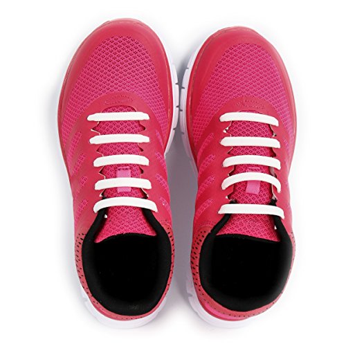 Cusfull Non piatto elastico cravatta in Silicone impermeabile lacci rapido Bootlaces per adulti e bambini - 16pc (Bianco, Allungare)