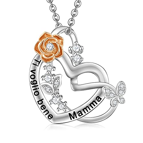 CUSJEW Collana Donna Argento Sterling 925 Ciondolo Cuori e Rosa con Incisione Regalo Amore Mamma Nonna Famiglia