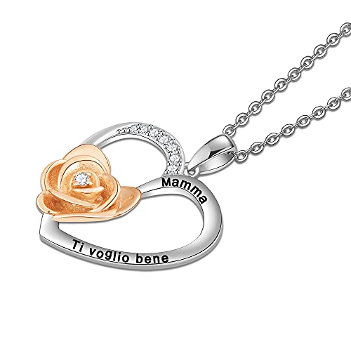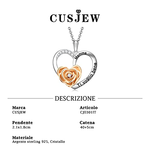 CUSJEW Collana Donna Argento Sterling 925 Ciondolo Cuore e Rosa con Incisione Regalo Amore Mamma Nonna Famiglia