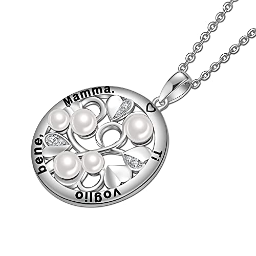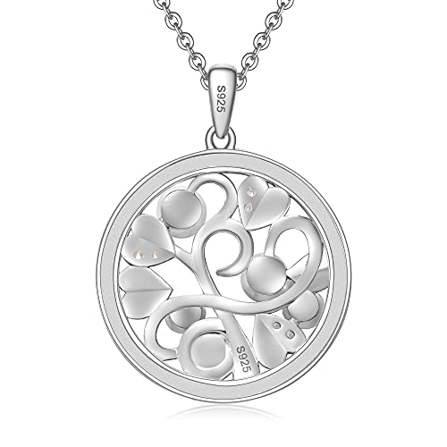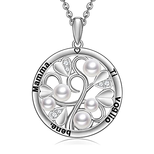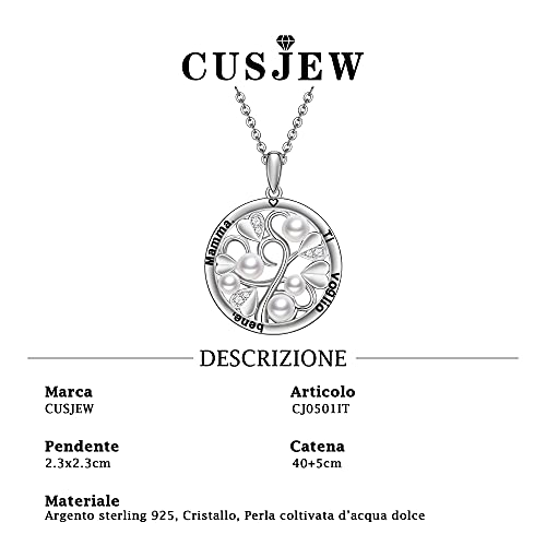 CUSJEW Collana Donna Argento Sterling 925 Ciondolo Albero della Vita e Perle con Incisione Regalo Mamma Nonna Figlia Famiglia Amore