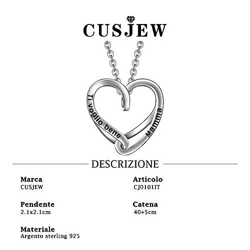 CUSJEW Collana Donna Argento Sterling 925 Ciondolo Cuore con Incisione Regalo Idea Amore Mamma Nonna