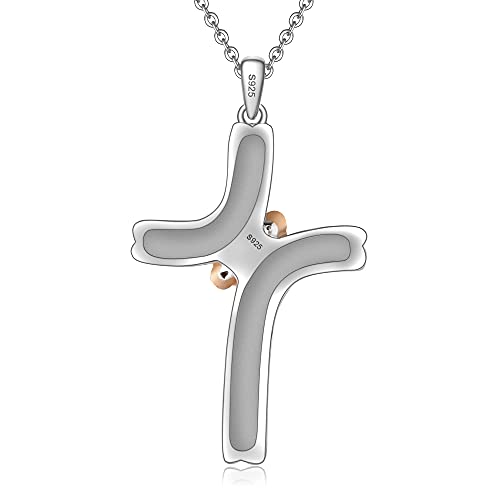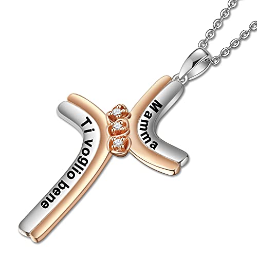 CUSJEW Collana Donna Argento Sterling 925 Ciondolo Croce Bicolore e Rosa con Incisione Regalo Mamma Nonna Figlia Famiglia Amore