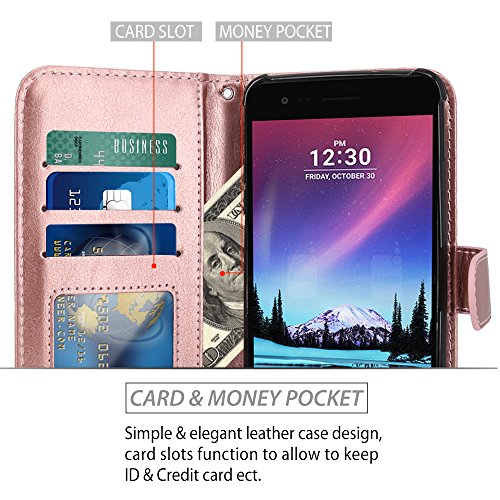 LK Custodia LG K10 2017, Case in Pelle PU Portafoglio con Fessure di Carta Cover Protettiva - Oro Rosa