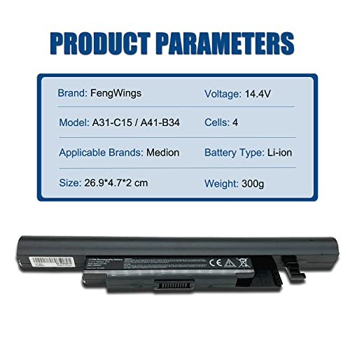Custodia con 14,4V 2600mAh A41-B34 A32-B34 A31-C15 batteria per PC portatile Medion Akoya S4209 S4211 S4213 S4214 S4215 S4216 S4611 S4613 E6239 E6239T 6240T