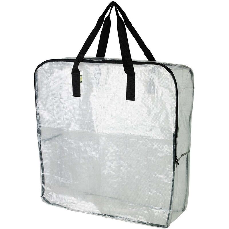 Borsa portaoggetti trasparente e riutilizzabile con cerniera. Ideale per lo stoccaggio, lo spostamento, la spedizione, il bucato e altro ancora. Resistente allo sporco, all'umidità e alle tarme. Perfetto per riporre vestiti, giocattoli, coperte o attrezzature sportive. Abbastanza grande da contenere ruote e pneumatici di auto, biciclette pieghevoli o passeggini. Può essere piegato in piano e di piccole dimensioni per riporlo facilmente in auto, nel bagaglio o nel cassetto. Facile da pulire, basta strofinare con acqua tiepida. Borsa molto capiente con dimensioni di 65 x 65 x 22 cm.