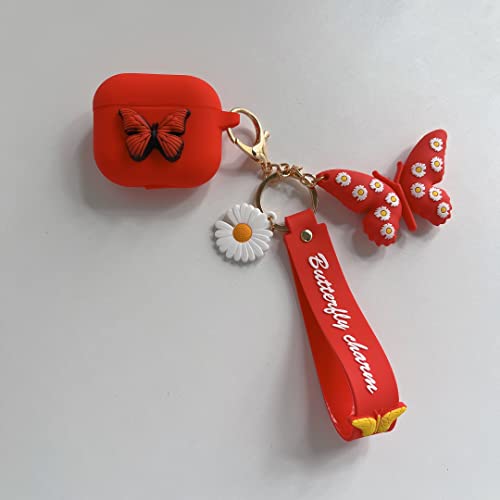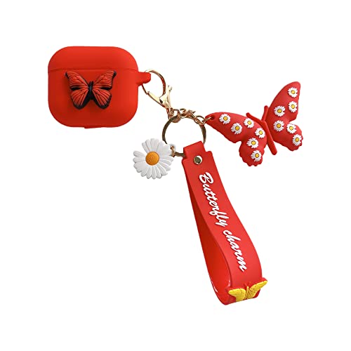Custodia per Airpods di terza generazione (2021 rilasciato), 3D Butterfly Kawaii Silicone Fashion Cute Cover con portachiavi per Airpods 3 Custodia di ricarica (rosso)